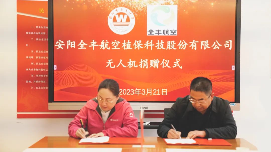 王艷軍校長和徐雪松主任分別代表雙方簽署捐贈協(xié)議。此次全豐航空捐贈2架無人機(jī),助力學(xué)校智慧型校園建設(shè)的進(jìn)一步實(shí)現(xiàn),讓更多學(xué)生有機(jī)會接觸無人機(jī),點(diǎn)亮同學(xué)們的科技夢想。