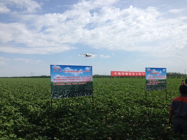2015年7月2日,全豐航空植保應(yīng)中國(guó)農(nóng)業(yè)科學(xué)院棉花研究所(中棉所)邀請(qǐng),在新疆石河子市進(jìn)行棉花飛防演示。
