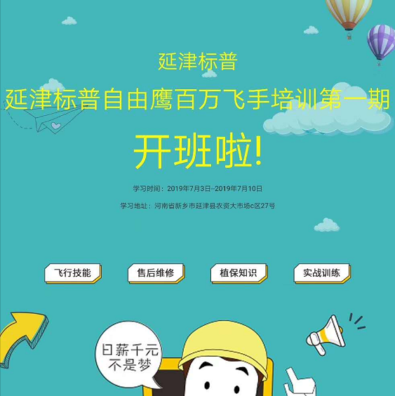 延津標(biāo)普自由鷹百萬飛手培訓(xùn)將于7月3日-7月10日開班啦!