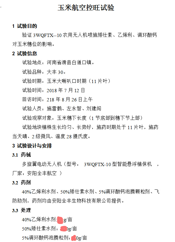 植保無人機(jī)飛防試驗(yàn)報(bào)告(關(guān)鍵數(shù)據(jù)隱藏)
