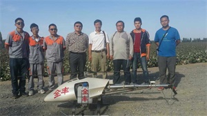 2014年9月11日,安陽全豐航空植??萍加邢薰撅w防大隊在新疆維吾爾自治區(qū)東北部石河子市149兵團(tuán)在棉花上展開了無人機(jī)噴灑落葉劑的實驗。